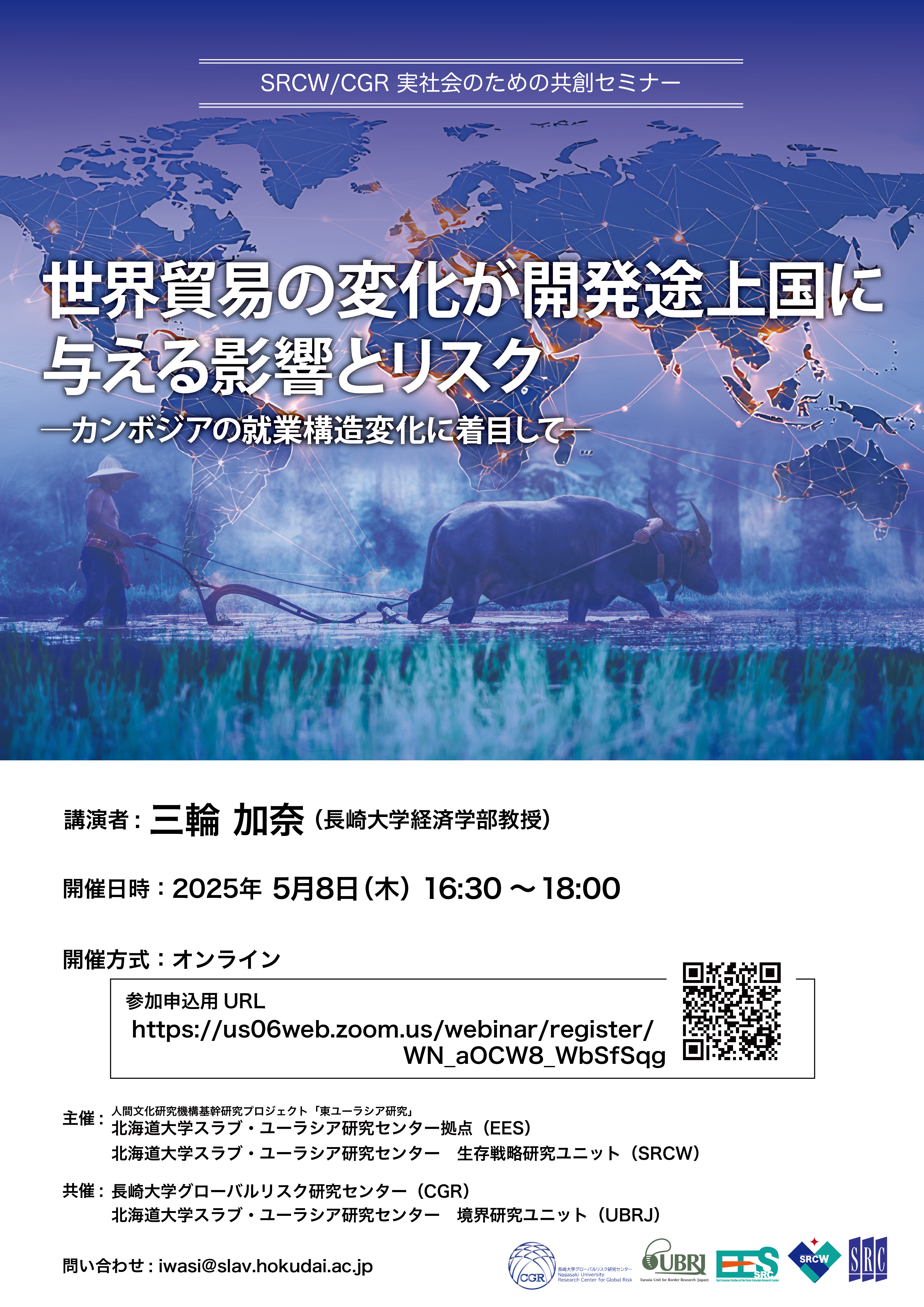 (終了)【SRCW/CGR 実社会のための共創セミナー】「世界貿易の変化が開発途上国に与える影響とリスク―カンボジアの就業構造変化に着目して―」(2025.5.8)