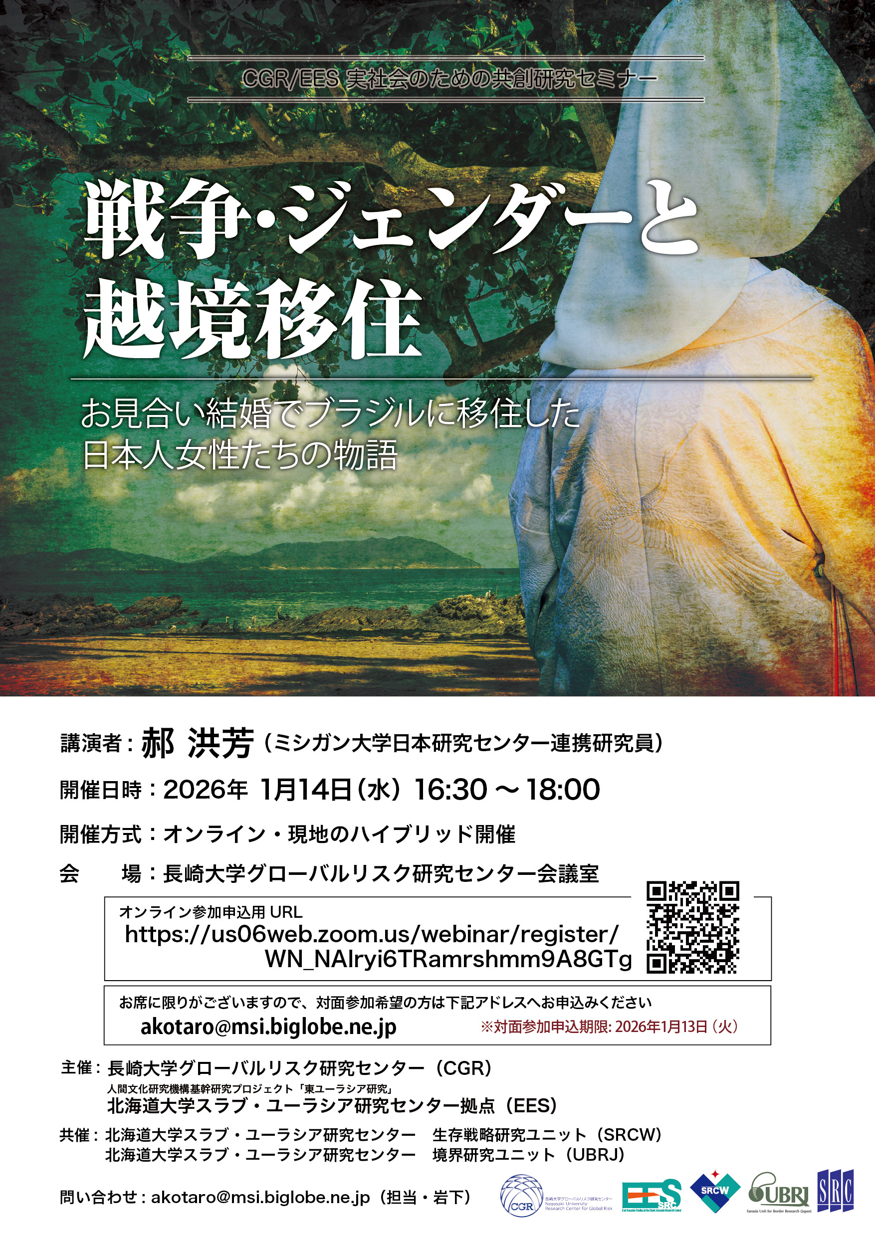 (終了)CGR/EES実社会共創セミナー「戦争・ジェンダーと越境移住~お見合い結婚でブラジルに移住した日本人女性たちの物語」2026.01.14(水)