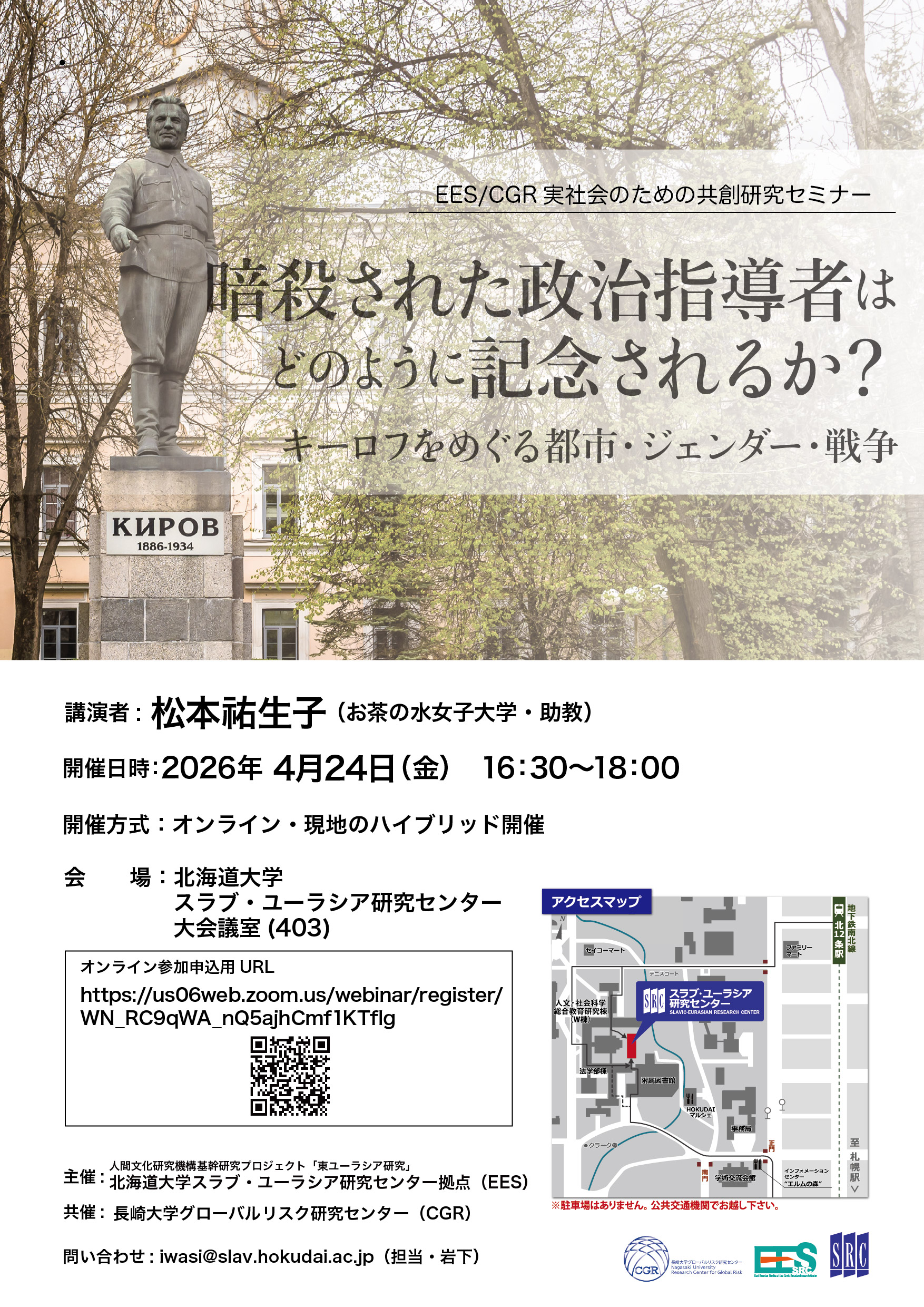 EES/CGR共創研究セミナー「暗殺された政治指導者はどのように記念されるか?キーロフをめぐる都市・ジェンダー・戦争」2026.04.24